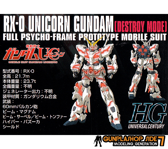 HGUC : RX-0 UNICORN GUNDAM DESTROY MODE : À¯´ÏÄÜ °Ç´ã µð½ºÆ®·ÎÀÌ ¸ðµå : 0161011 : 4543112610119 : 5057399 : 4573102573995