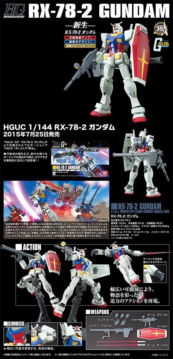 2001³â 5¿ù¿¡ ¹ß¸ÅµÈ HGUC RX-78-2 °Ç´ãÀ» ½Å ±ÝÇüÀ¸·Î »õ·Î ¼³°èÇÏ¿© ÇÁ·ÎÆ÷¼Ç°ú °¡µ¿¼ºÀ» ³ôÈù Á¦Ç°ÀÔ´Ï´Ù.